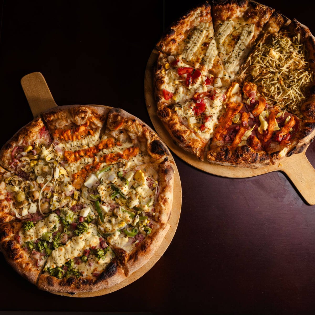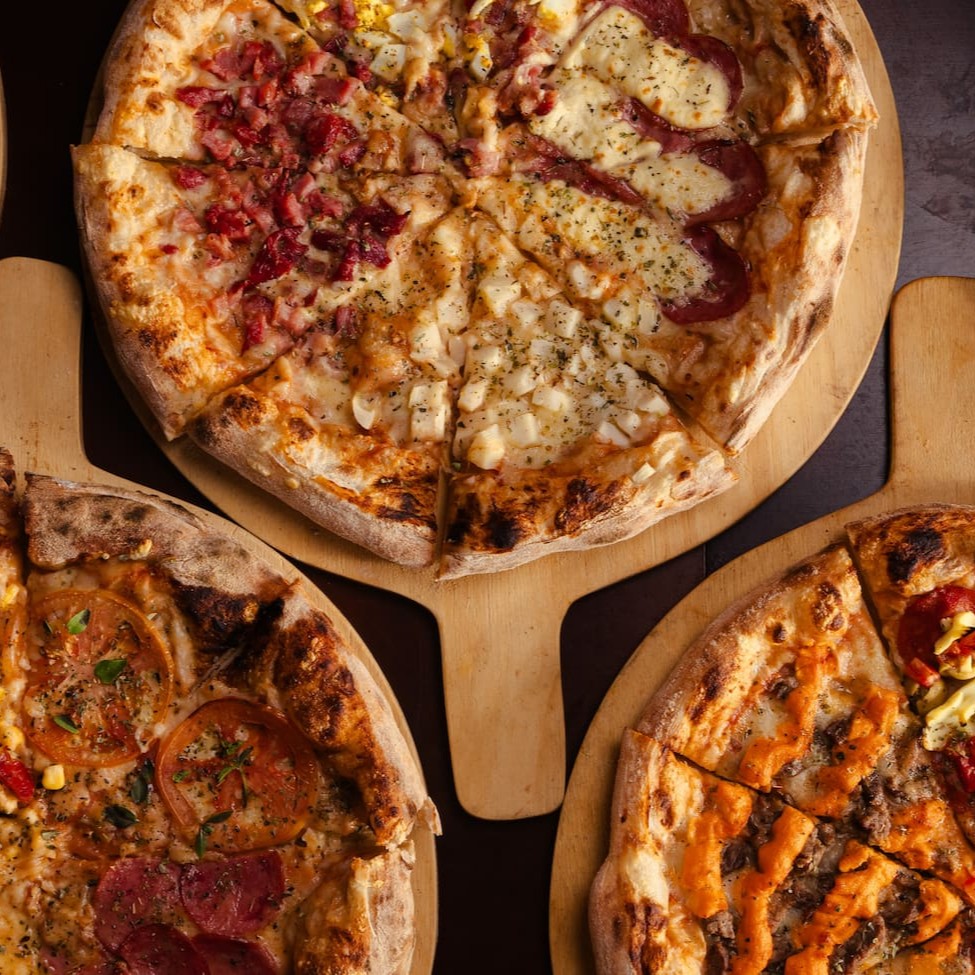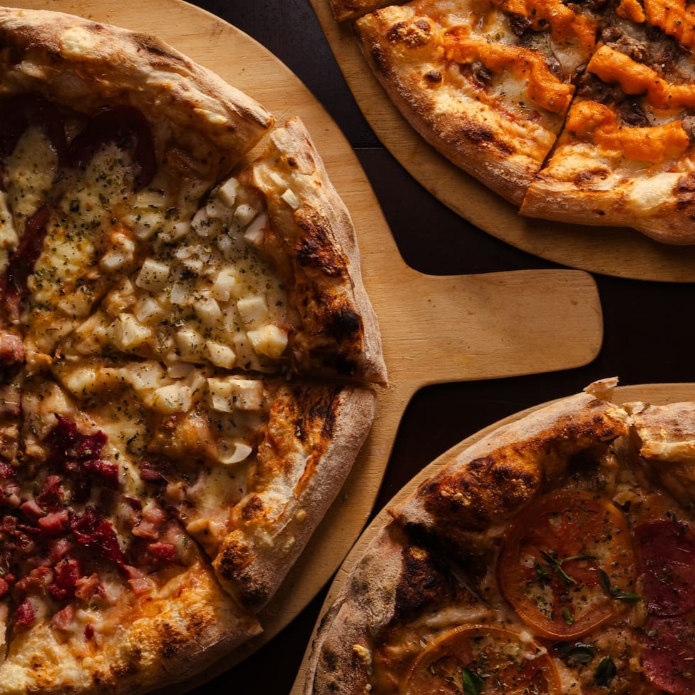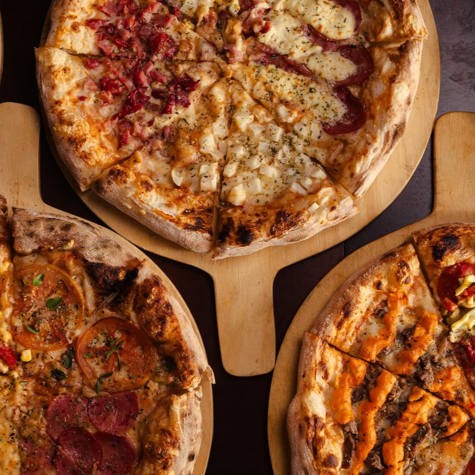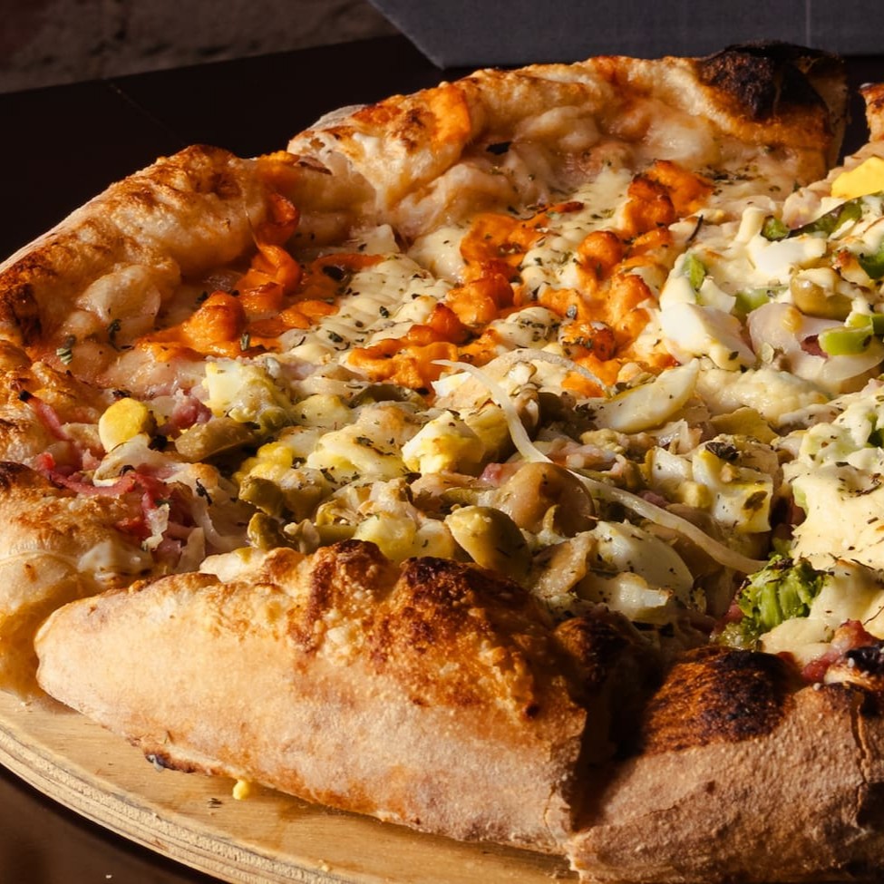 Mais sabores, mais prazer! Pizza Big de 12 fatias com 3 sabores à sua escolha. Massa leve, muito recheio e sabor em cada pedaço.