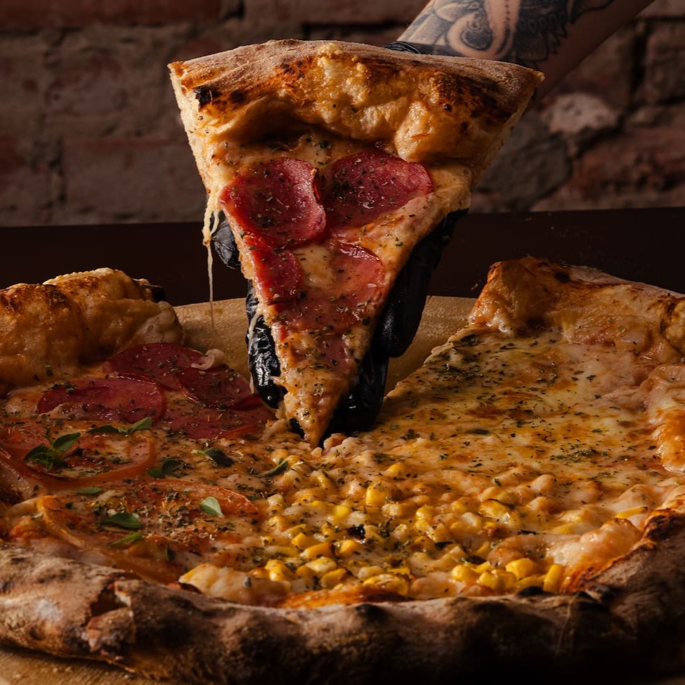 Gigante, recheada e impossível de resistir! Pizza Big com 12 fatias e borda recheada cremosa. Massa leve, muito queijo e sabor em cada pedaço.