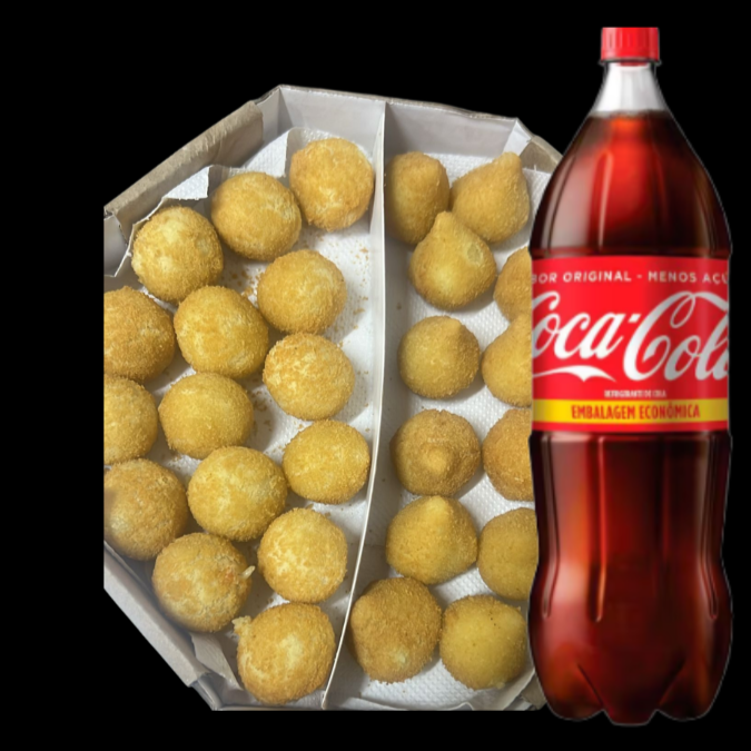 6 unidade coxinha e 6 unidade de bolinha de queijo + 2 coca lata