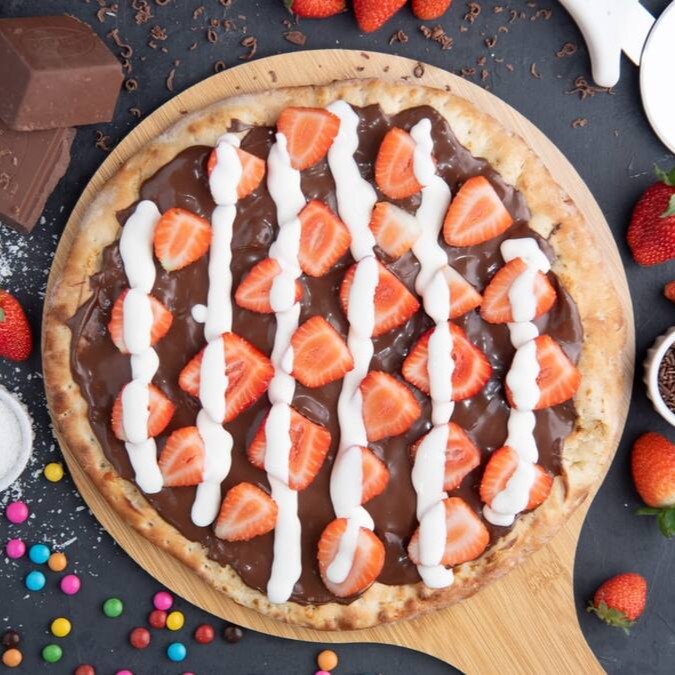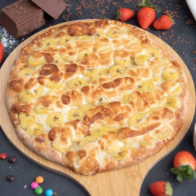 2 saborosas pizzas grandes (10 fatias cada) e 1 pizza broto doce (6 fatias).