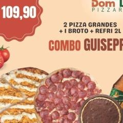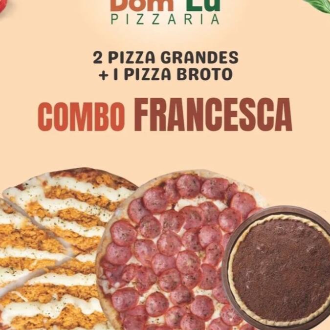 2 saborosas pizzas grandes (10 fatias cada), 1 broto doce (6 fatias) e 1 refrigerante 2 litros.