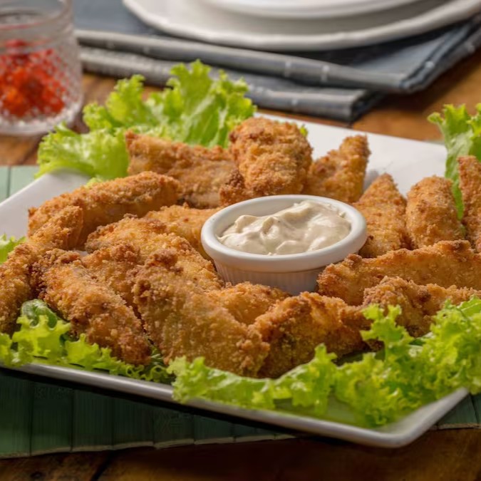 O prato 'Porção Iscas de Frango' é uma indulgência culinária composta por suculentas iscas de coxa e sobrecoxa de frango desossada, cuidadosamente selecionadas. Cada pedaço é primorosamente empanado em uma camada leve de farinha de arroz, oferecendo um contraste perfeito com a maciez do frango. Cada mordida é uma experiência isolada de sabores que explodem na boca, tornando-o o deleite perfeito para aqueles que apreciam a simplicidade e a sofisticação da culinária de frango. Perfeito para ser degustado individualmente. Não acompanha alface.