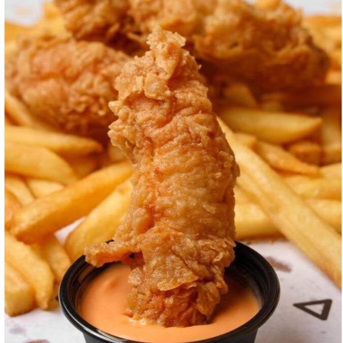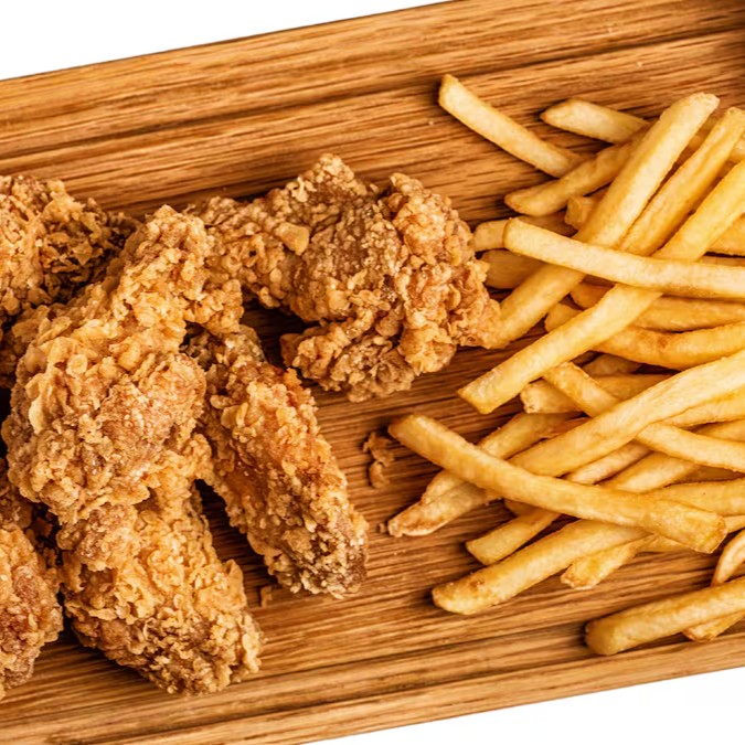 Apresentamos nosso campeão de vendas, o Combo Iscas de Frango + Batata Frita, agora com $20 de desconto! Este combo irresistível inclui uma generosa porção de iscas de frango, feitas com coxa sobre coxa, empanadas na farinha de arroz, acompanhadas de uma deliciosa porção de batatas fritas. Para completar essa experiência gastronômica, oferecemos um refrigerante grátis de sua preferência. É o combo queridinho do , perfeito para qualquer momento do Dia!