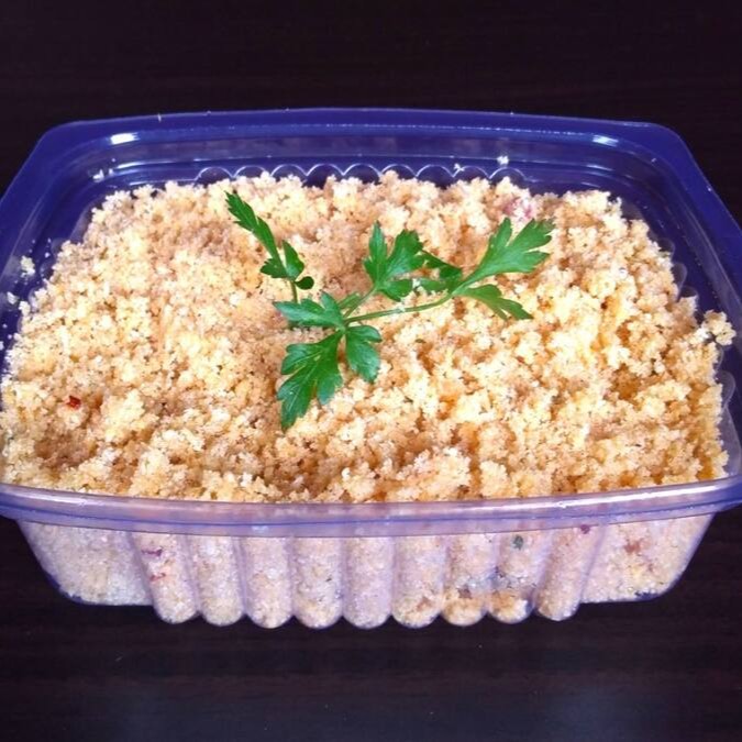 Salpicão de frango desfiado com maçã, pêssego, uva passa e batata palha. (aprox. 500g)