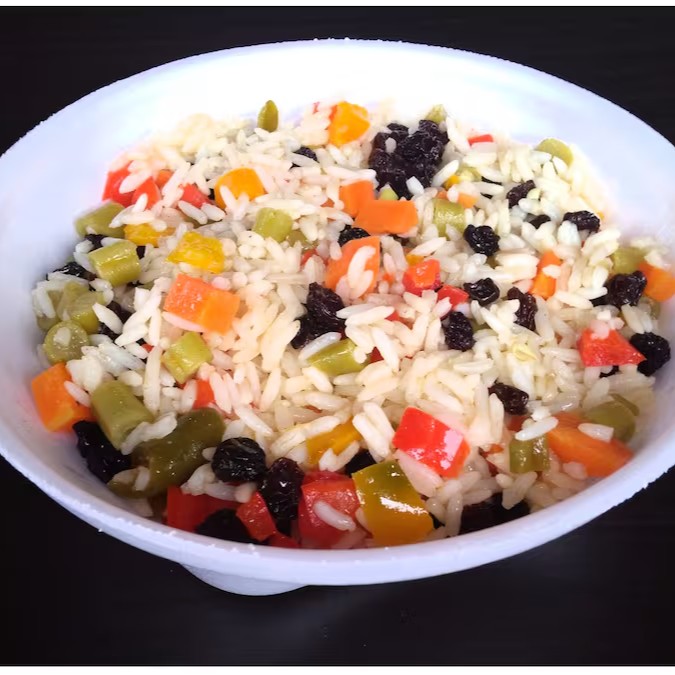 Arroz branco com uva passa, cenoura, vagem e pimentão. (aprox. 500g)