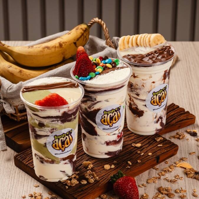 Açaí Fresh Turbinado (leite Em Pó E Condensado, Avelã, Ninho, Pistache,banana)