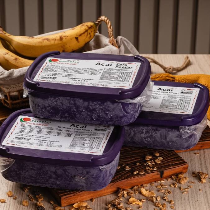 Açaí cremoso e puro zero açúcar, com sabor intenso e natural, perfeito para refrescar e aproveitar sem culpa.