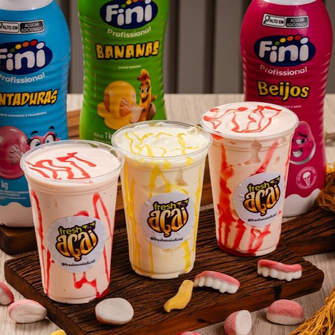 Milk Shake de Fini Banana cremoso, batido na medida certa, com o sabor inconfundível e divertido do Fini Banana. Disponível nos tamanhos 330ml, 550ml e 770ml.