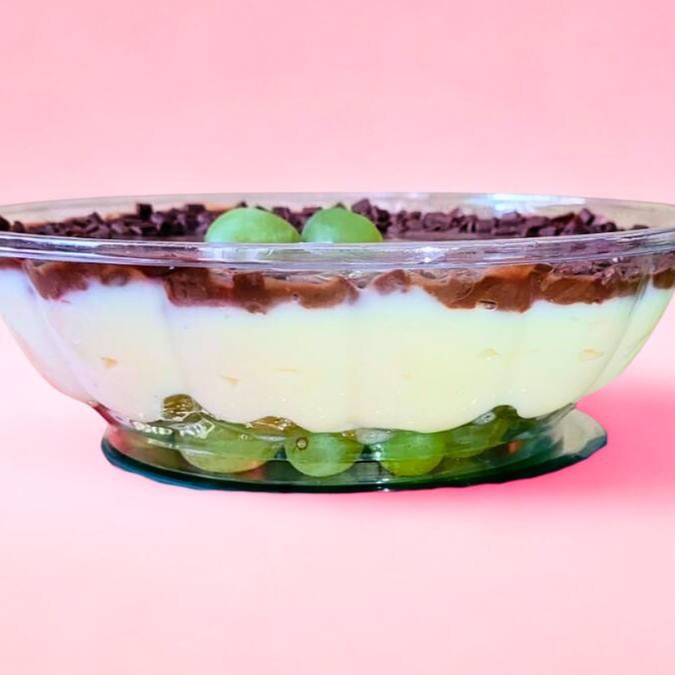 Bombom de uva no pote. Uvas verdes sem sementes selecionadas, brigadeiro cremoso gourmet de Ninho e nossa ganache ao leite incrivelmente sedosa. Aproximadamente 150g