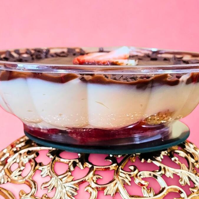 Bombom na travessa. Morangos selecionados, brigadeiro cremoso gourmet de Ninho e nossa ganache ao leite incrivelmente sedosa. Aproximadamente 550g