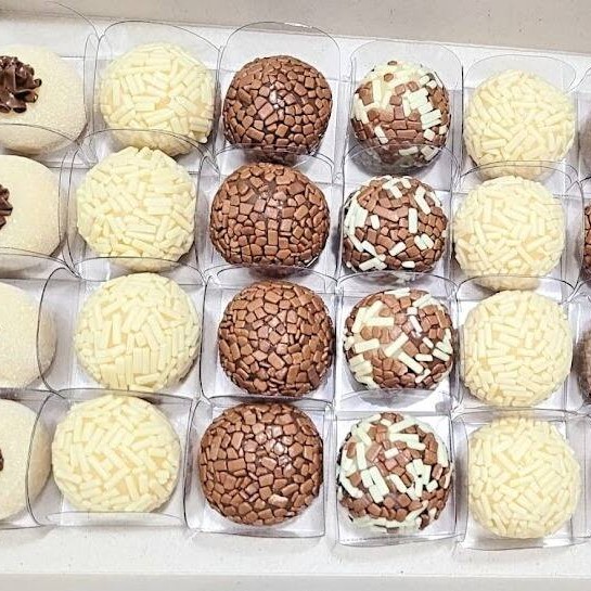 Brigadeiro cremoso gourmet de Leite Ninho com uvas verdes sem sementes e muitos pedaços do nosso delicioso brownie artesanal!!