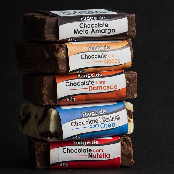 Kit com 5 fudges. Um de cada sabor: nozes, Nutella, meio amargo, damasco e chocolate branco com Oreo. A melhor opção para conhecer todos os sabores pagando menos ;)