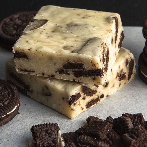 60g de um fudge de chocolate branco, um pouco mais macio e doce que o fudge tradicional, com pedaços crocantes do biscoito! Hmmm!