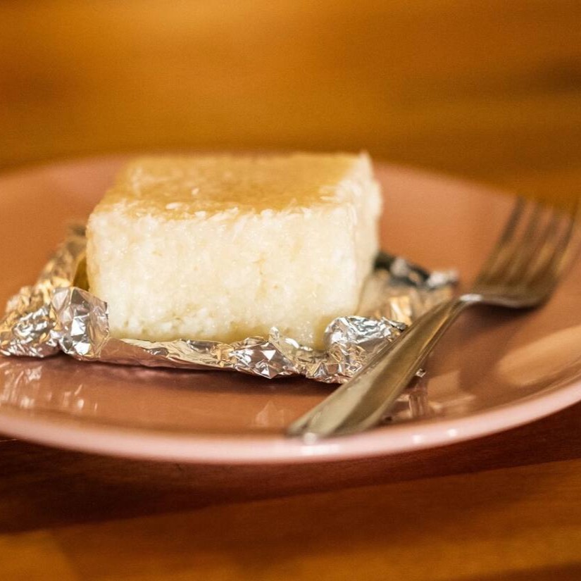 Bolinho gelado de coco, tapioca e creme de leite de aveia.