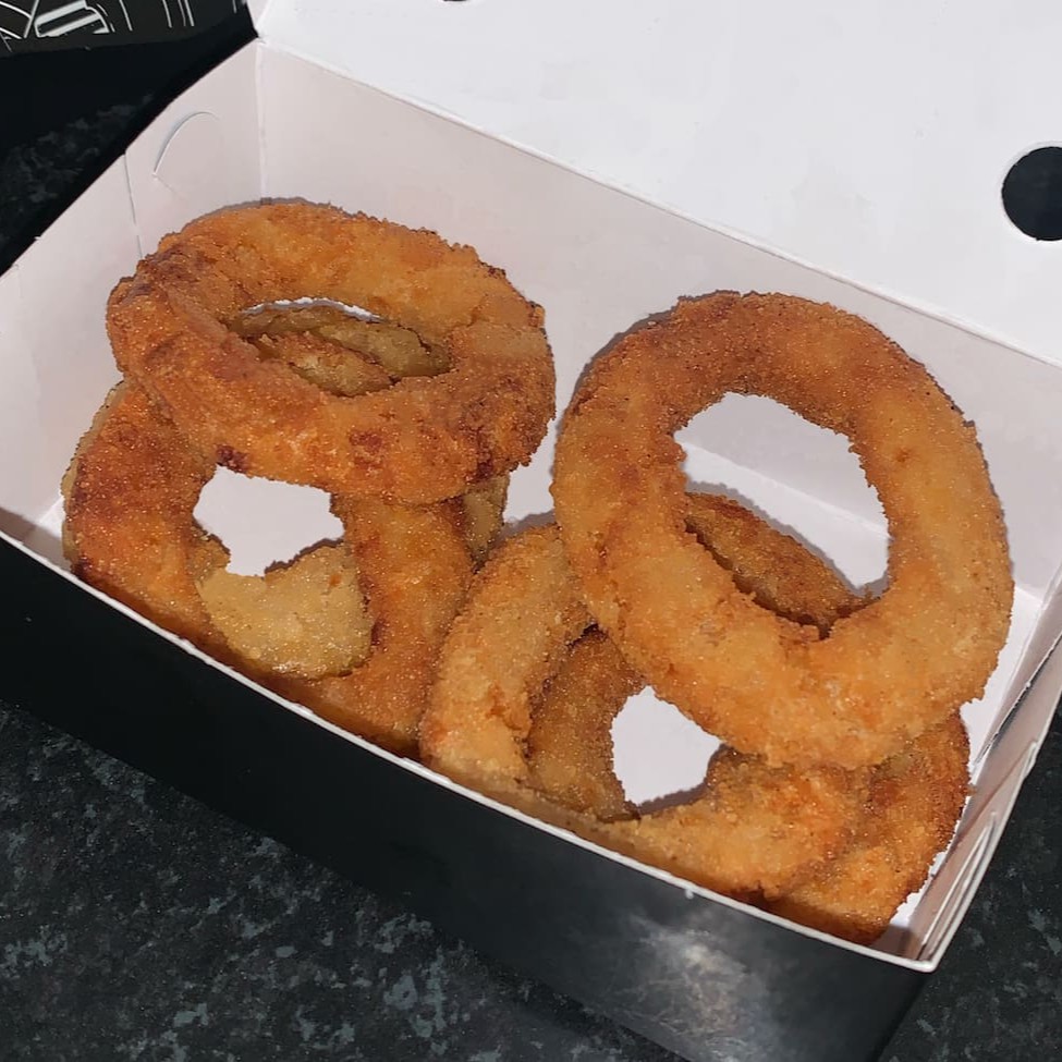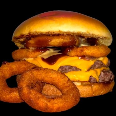Pão Brioche, 2 smash burguers de 90g cada, fatias de queijo cheddar, 3 cebolas empanadas, barbecue e maionese artesanal.