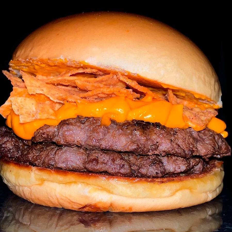 Pão brioche, 2 camadas de carne tipo smash de 90g cada, molho cheddar da melhor qualidade e Doritos.