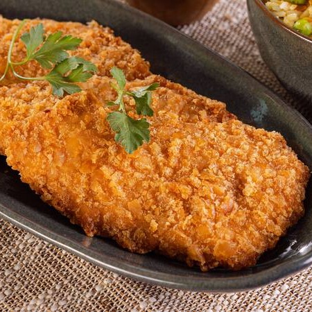 Porção 100g de Frango à milanesa crocante por fora e macio por dentro, empanado na medida certa para garantir sabor e textura irresistíveis.