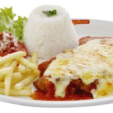Porção 100g de Bife à parmegiana suculento, empanado e coberto com molho de tomate e queijo derretido, deixando seu prato ainda mais irresistível.