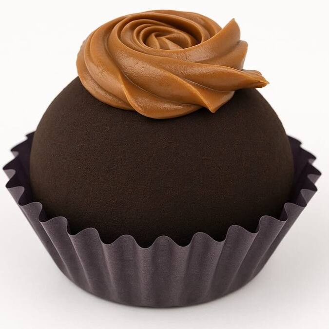 Brigadeiro de doce de leite finalizado com coco queimado ralado. Tamanho 20g