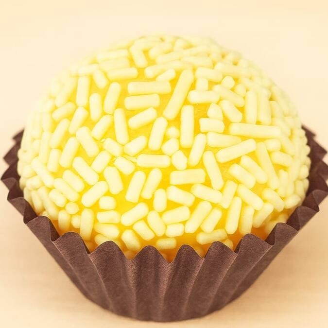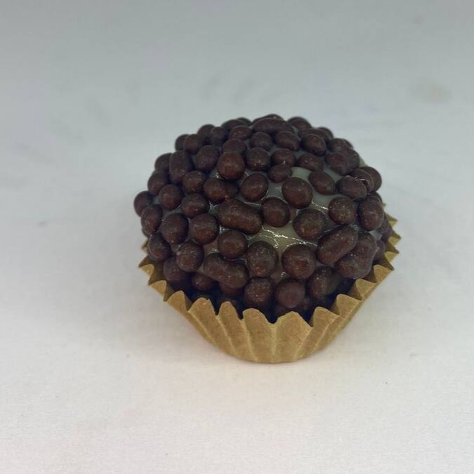 Brigadeiro belga branco finalizado com granulado Callebout branco