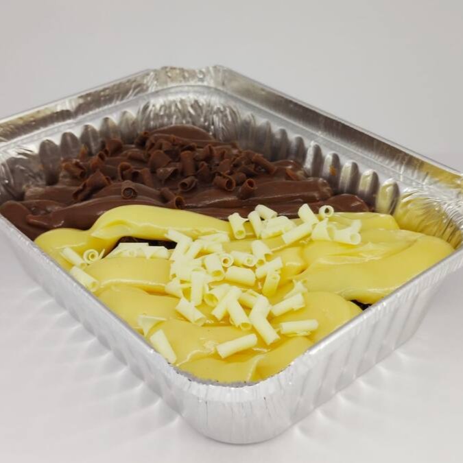Nosso famoso brigadeiro belga branco cremoso interclado com massa fofinha e úmida feita com Ninho