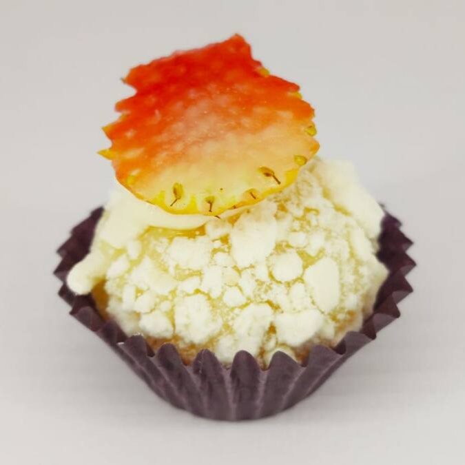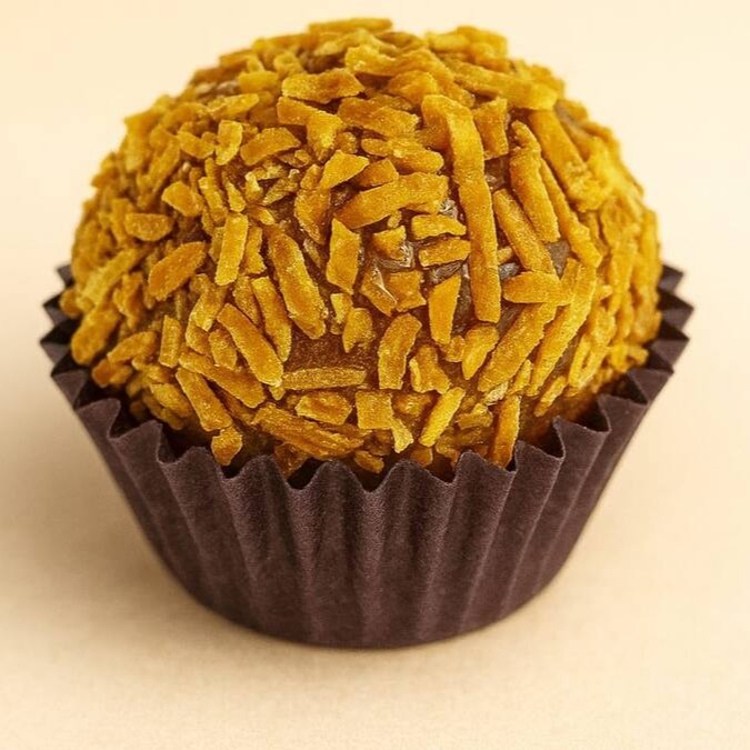 Brigadeiro de baunilha envolto por uma crocante casquinha de açucar maçaricado