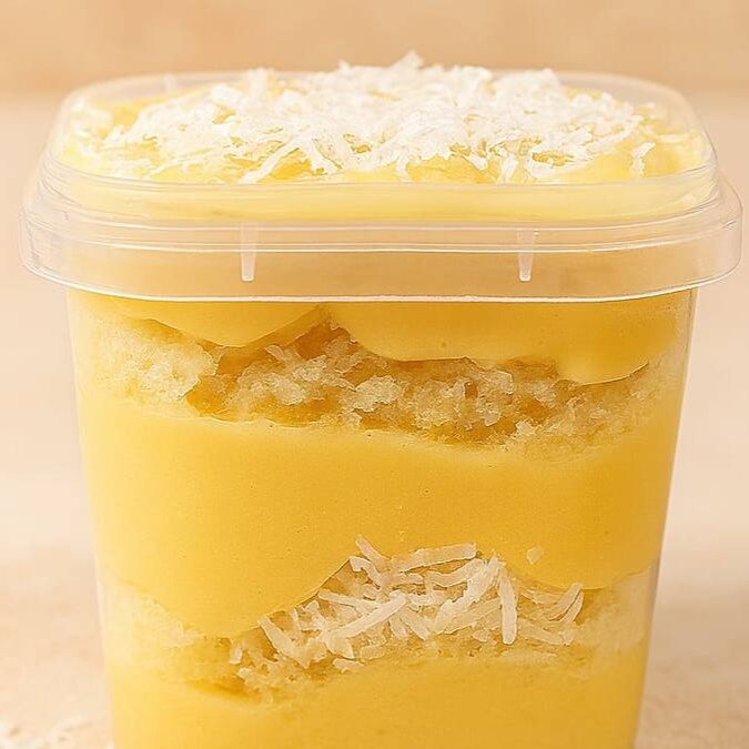 Nosso inbox é composto por brigadeiro cremoso de coco intercalado com massa branca de iogurte bem fofinha e molhadinha