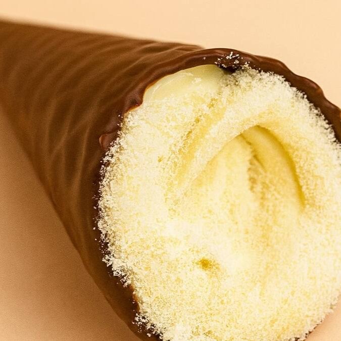Cone banhado no chocolate, recheado com brigadeiro belga