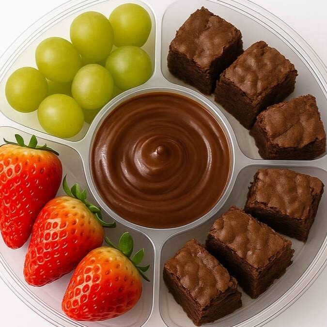 acompanha uvas, morangos, brigadeiro belga preto e brownie