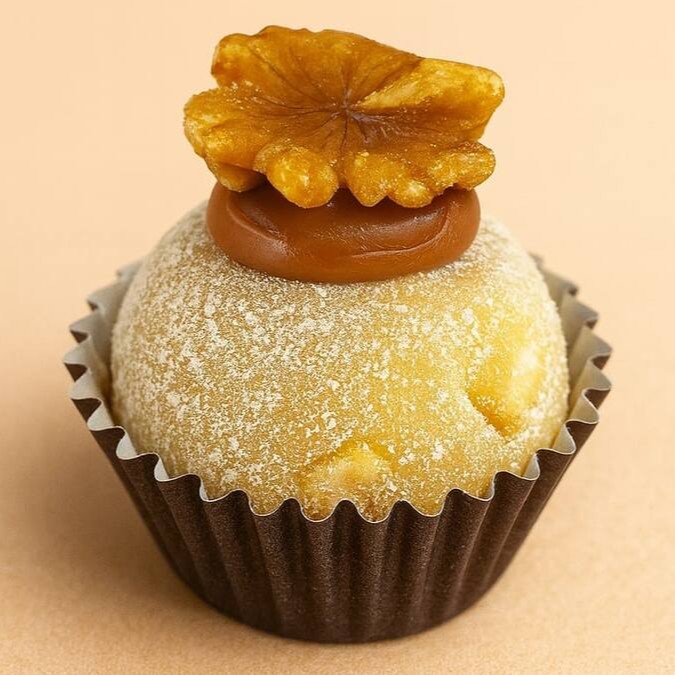 Brigadeiro de doce de leite finalizado com nozes . Tamanho 20g