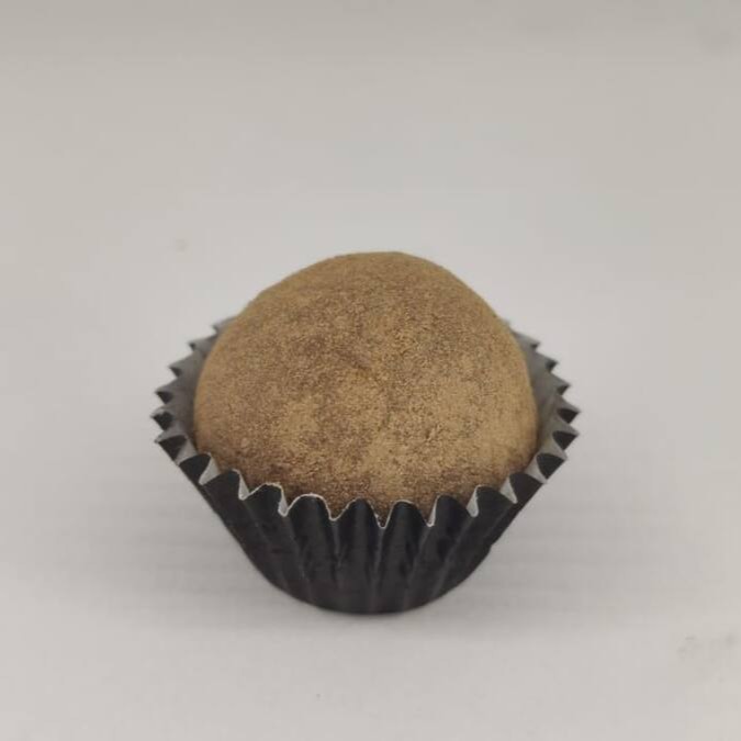 Brigadeiro de tiramisu finalizado com chocolate 50%