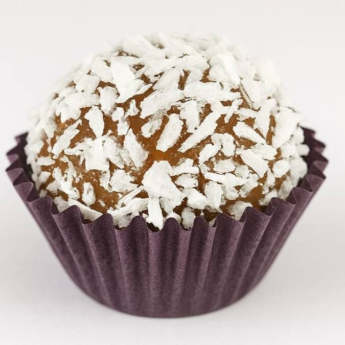 Brigadeiro de prestigio finalizado com coco ralado. Tamanho 20g