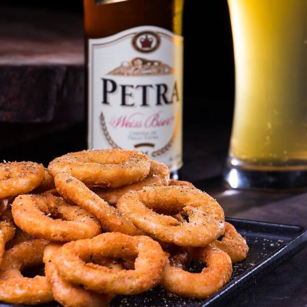 Aproximadamente 400 Gramas de Onion Rings Crocantes e deliciosas, temperadas com lemon pepper e salsinha desidratada.