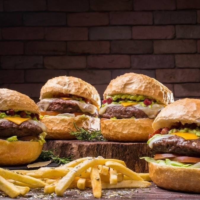 4 lanches de Hamburguer Artesanal de costela completo assados na brasa,(hamburguer costela 180gr, bacon, mussarela, cheddar, cream cheese, maionese da casa, alface e tomate.),mais uma porção de batata c/ aproximadamente 400gr e um refrigerante 2 litros.