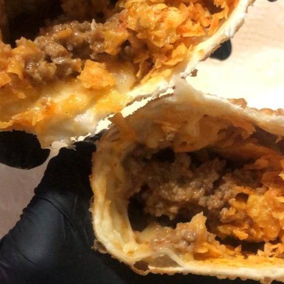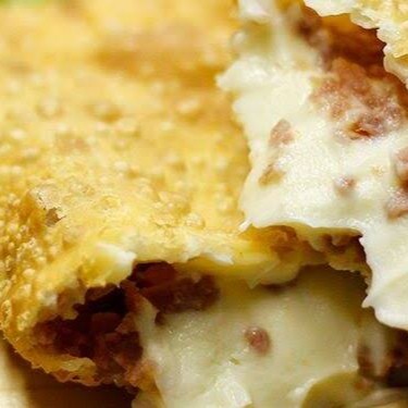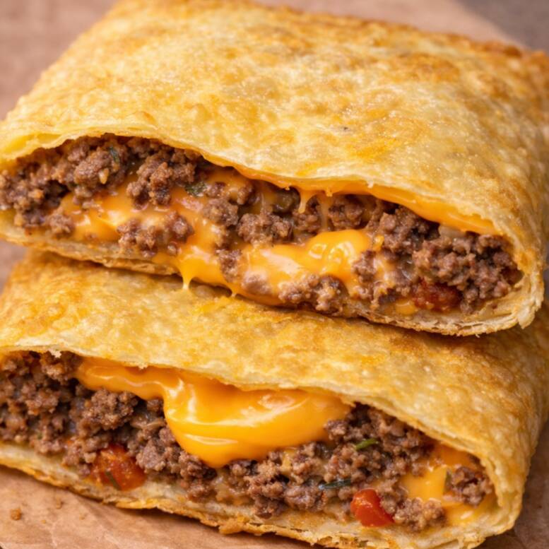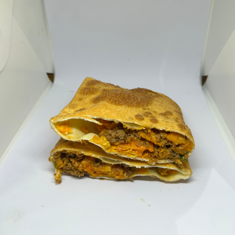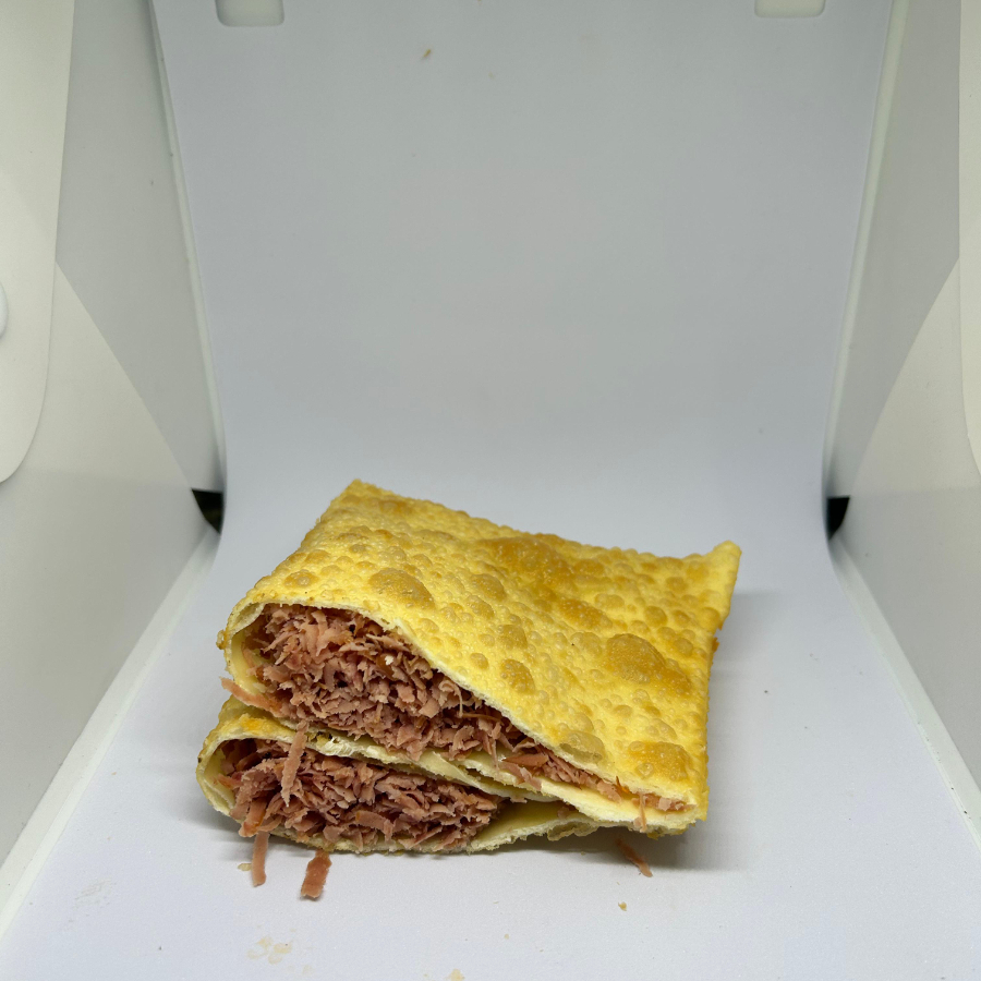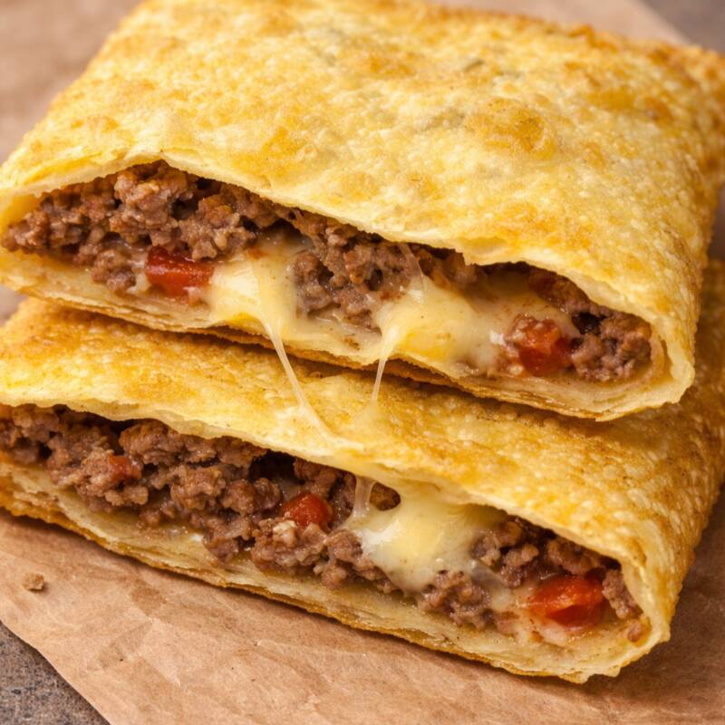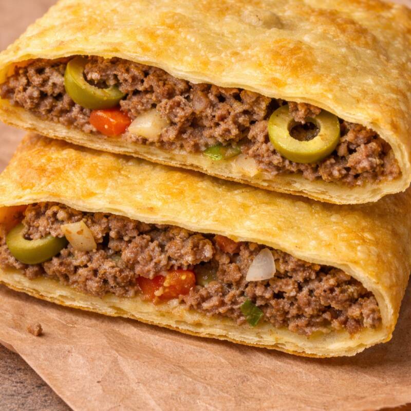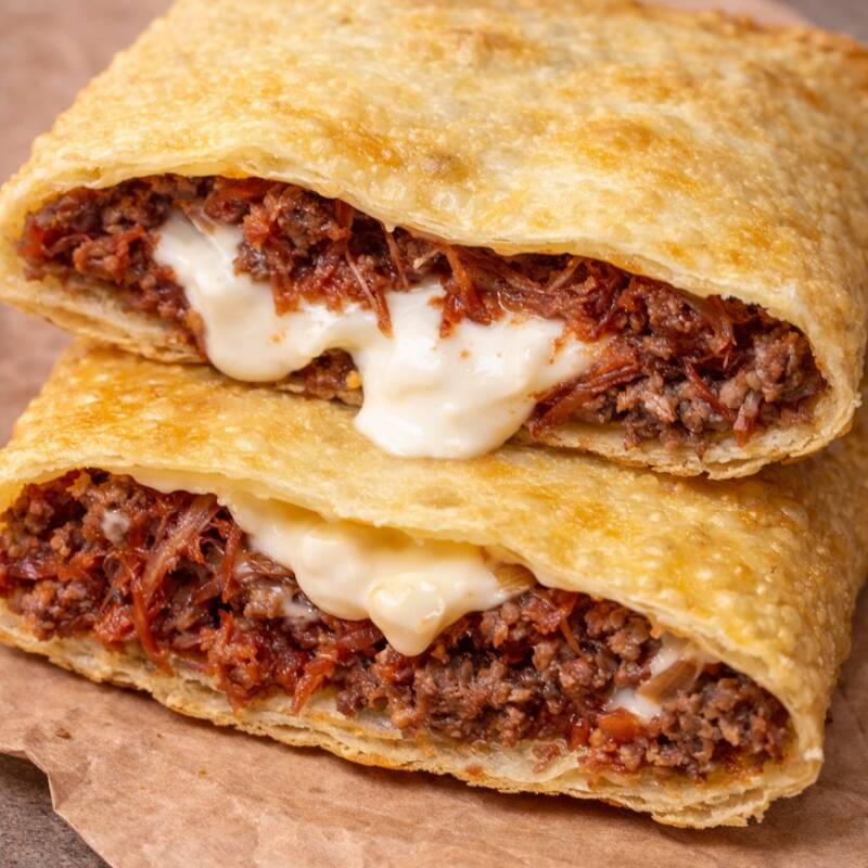 Delicie-se com o nosso saboroso pastel especial de carne com queijo.
