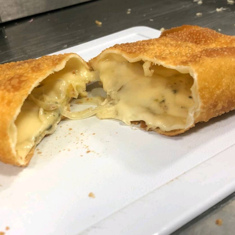 Delicioso pastel de 4 queijo gorgonzola,queijo minas, queijo prata, que contém 180g uma massa bem leve crocante que vai alegrara seu Dia .