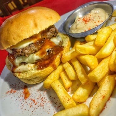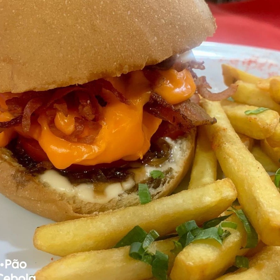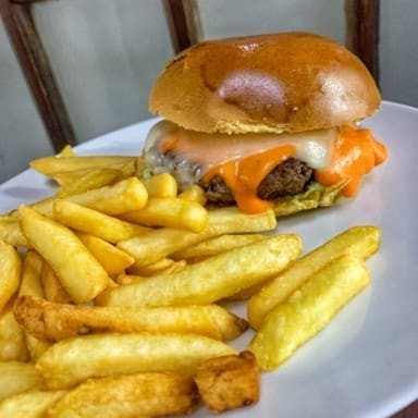 Pão, hamburguer 150g, queijo mussarela, queijo cheedar, molhos a sua escolha. *acompanha batata frita*