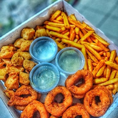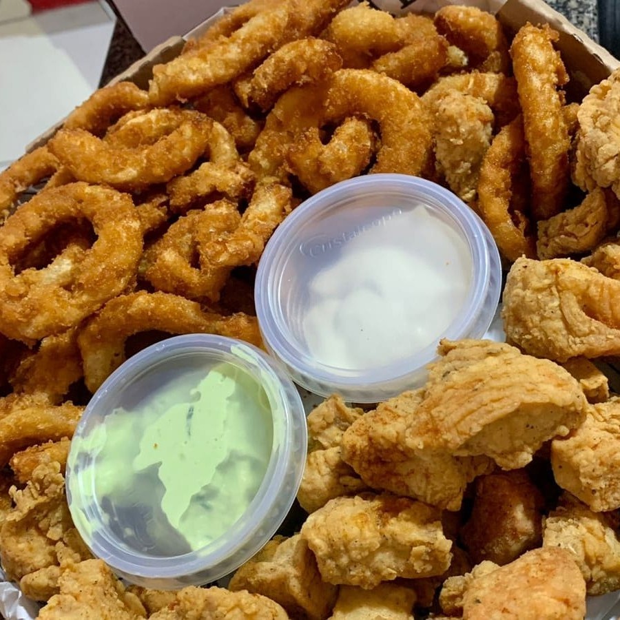São 500g de Iscas de Frango 500g de Batata Frita 500g de Aneis de Cebola (Onion Rings) Acompanha Molho barbecue e molho de Alho! Todas embaladas e Enviadas na Caixa. *Atenção Senhores Clientes, As Porções São Pesadas Antes De Serem Fritas, Vindo A Diminuir Após o Preparo*