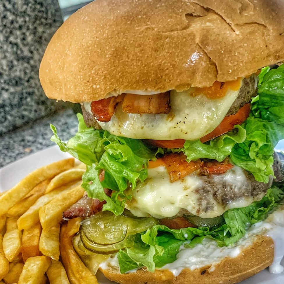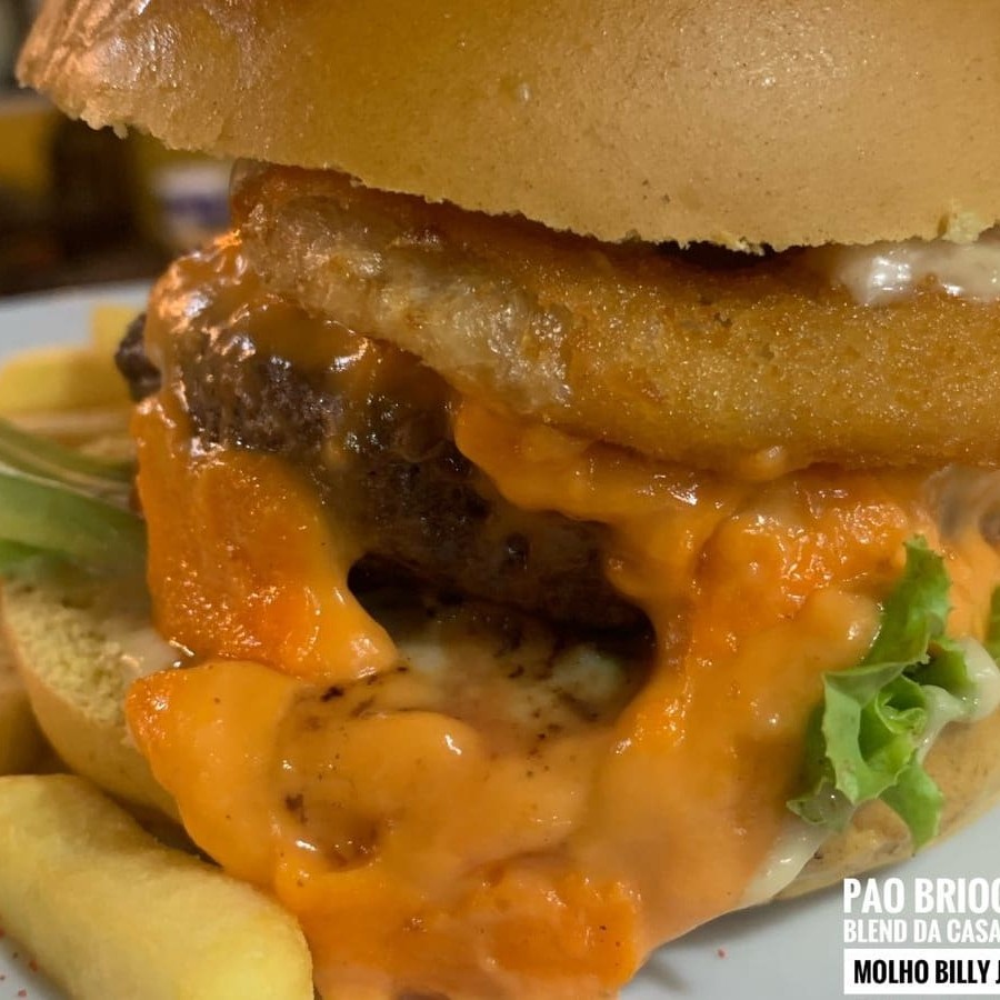 Pão Brioche, Blend da casa 150g, Onion Rings, Bacon Crocante, Cheddar, Alface, Tomate!