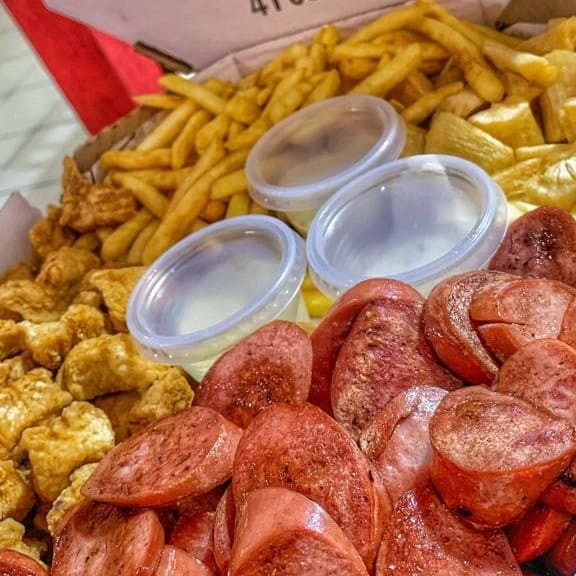 São 600g de Iscas de Peito de Frango +500g de Calabresa +500g de Batata Frita +500g de Mandioca Frita! Acompanha Molho barbecue e molho de Alho! Todas embaladas e enviadas na Caixa! *Atenção Senhores Clientes, As Porções São Pesadas Antes De Serem Fritas, Vindo A Diminuir Após o Preparo*