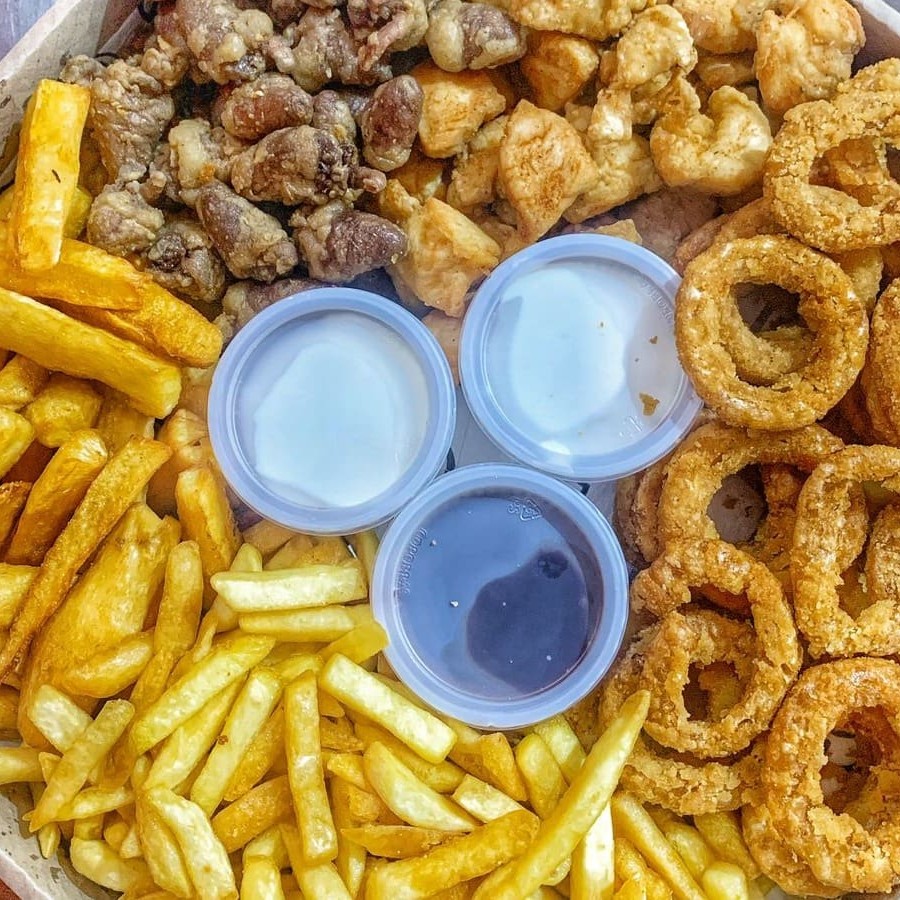São 600g de Iscas de Peito de Frango +500g de Calabresa +500g de Batata Frita +500g de Mandioca Frita! Acompanha Molho barbecue e molho de Alho! Todas embaladas e enviadas na Caixa! Atenção Senhores Clientes, As Porções São Pesadas Antes De Serem Fritas