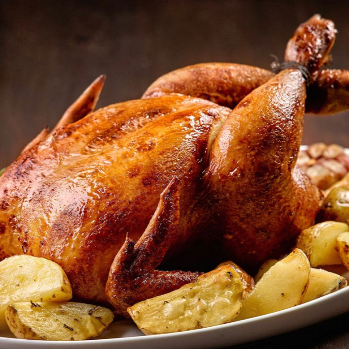 Frango Assado Suculento Recheado com uma Maravilhosa Farofa.
