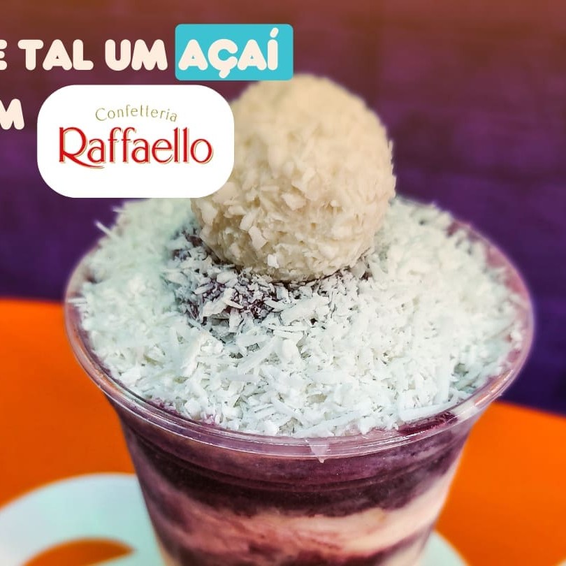 Delicioso copo de açaí recheado com camadas generosas de Creme de Rafaello, Leite em Pó ,Creme de Ninho e Coco Ralado proporcionando um sabor que é um tanto luxuoso quanto irresistível .Por fim este copo é coroado com um bombom Rafaello, adicionando um toque final de doçura . Uma experiência gastrônomica verdadeiramente especial aguarda você.
