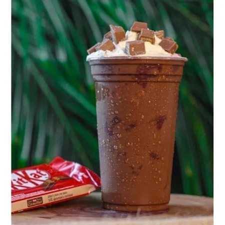 Delicioso copo de Açai com camada de Nutella em volta ao copo, 1 camada de leite em pó , 1 camada de Kit Kat em pedaços , 1 camada de leite condensado e finalizado com Kit Kat em pedaços.