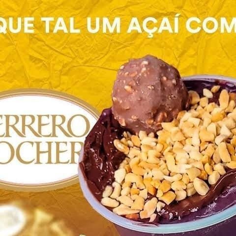 Apresentamos o Açaí Trufado Ferrero ,um dos campeões de venda da categoria Açaí Mais Vendidos. Este delicioso açaí de 330 ml é cuidadosamente preparado em três camadas distintas e generosamente recheadas. A primeira camada é uma camada de Nutella, seguida de uma crocante camada de amendoim e 1 camada de creme Ferrero Rocher . Mas a grande surpresa está no topo: um irresistível bombom Ferrero Rocher, que confere um sabor inigualável a este açaí. Uma combinação perfeita de sabores que irá conquistar seu paladar!