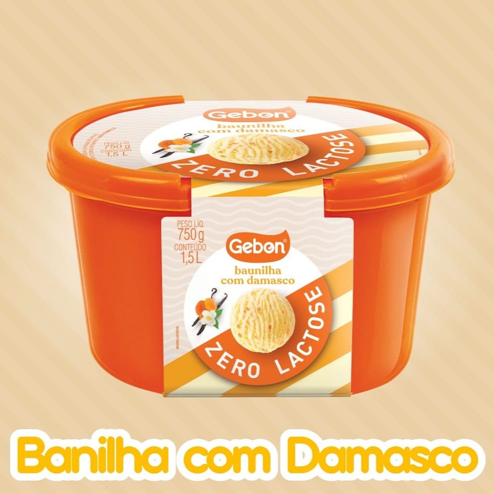 Pote de 1,5 litros sorvete baunilha com pedaços de damasco . Não contém lactose - Não contém glúten
