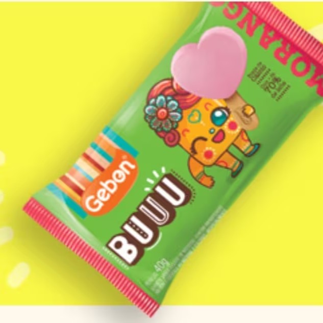 Picolé sabor chiclete com banana e cobertura de chocolate branco e castanha de Caju. Não contém Glúten, Contém lactose.