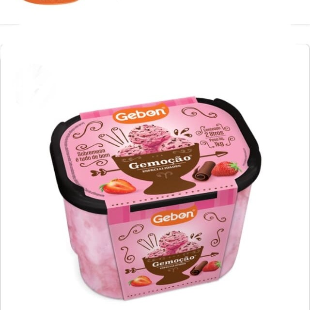 Pote de 2 litros sorvete de morango com pedaços de chocolate