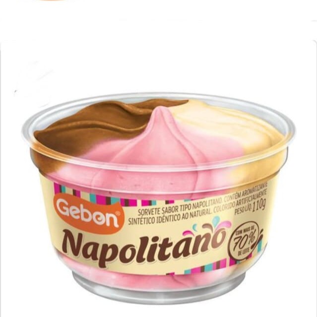 Sorvete napolitano 110g sabor chocolate morango e creme