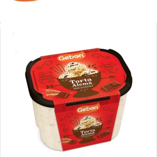 Pote 2 litros sorvete tipo torta alemã. Contém glúten